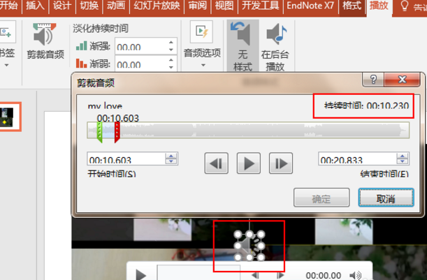 5、如果需要背景音乐,可以插入——音频,导入你喜欢的音乐,同样将时间设置为10秒。然后选中音频按钮,右键,置于底层。