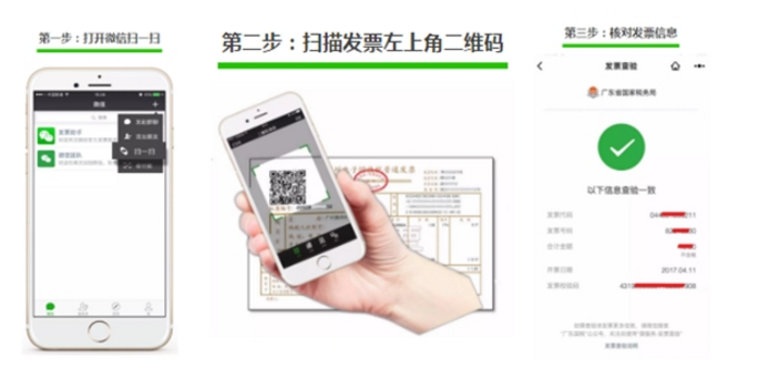 微信扫一扫发票查验功能可查询发票信息中的4-5项信息,身在广东的小伙伴们,以后只需微信扫一扫就能知道发票真假了。