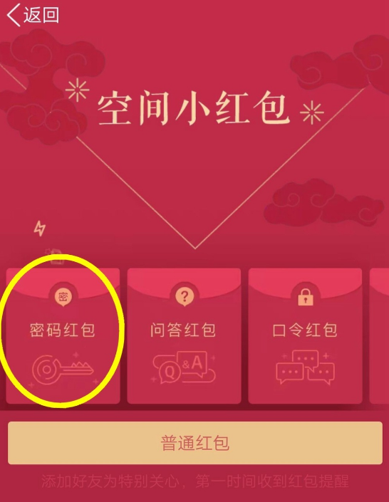 3、空间小红包有好几种,我们选择密码红包,点击进入设置。