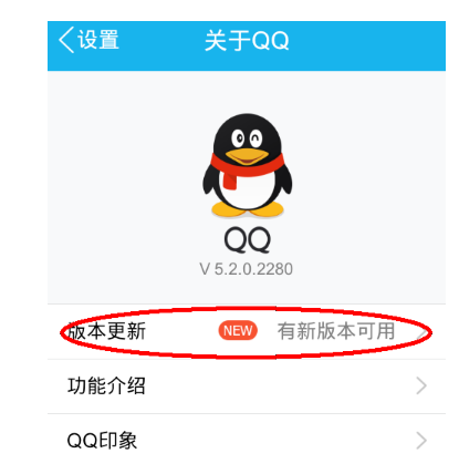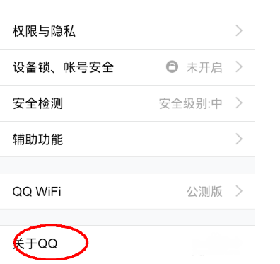 5、在关闭在wifi下自动在后台下载新版本的情况下,如果要更新版本的话可以在设置窗口下面点击关于QQ,如图所示:
