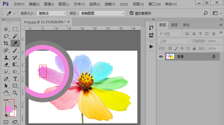 4、如果我们选择取样点,则当我们鼠标左键在图片上点击的时候,选择的就是点击的那个点的颜色。