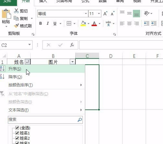 3、接着插入图片,注意图片的名称要和A列的名称对应好,