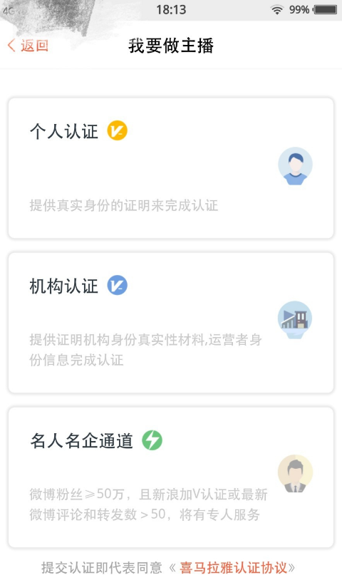 5、根据个人情况选择个人认证、机构认证、名人名企通道完成认证就可以了。