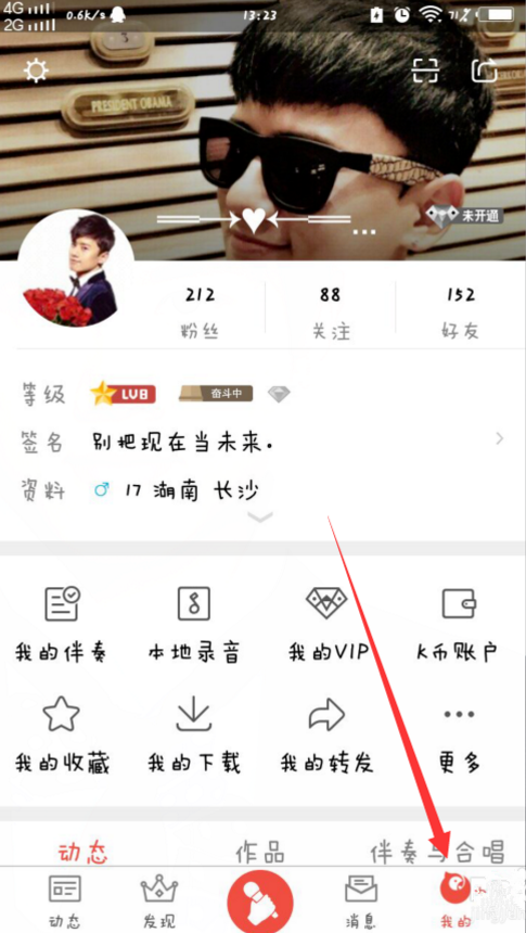 1、打开全民K歌,我们可以先进行签到,领取几朵鲜花,接着点击右下角“我的”,