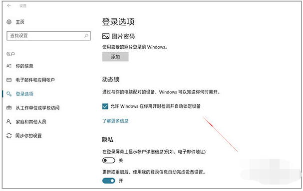 打开手机把蓝牙模式打开,然后开启电脑上的蓝牙搜索,几秒钟后手机便会与电脑相连。此时再点击Win10“设置”→“登录选项”,勾选“动态锁”标签下的“允许Windows在你离开时检测并自动锁定设备”,接下来就是拿着你的手机走得越远越好了。当Win10发现你已经离它很远时(其实就是检测不到手机蓝牙信号了),就会自动锁定桌面(时间为检测不到手机蓝牙信号的1分钟又后),这就是Win10里的“离座自动锁屏”。