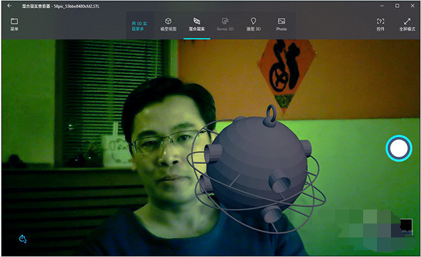 具体方法是,启动“混合现实查看器”导入3D模型,然后点击“混合现实”标签,这时系统会自动打开电脑摄像头。片刻后,那些电影里才能有的场景,就神奇般出现在眼前了。