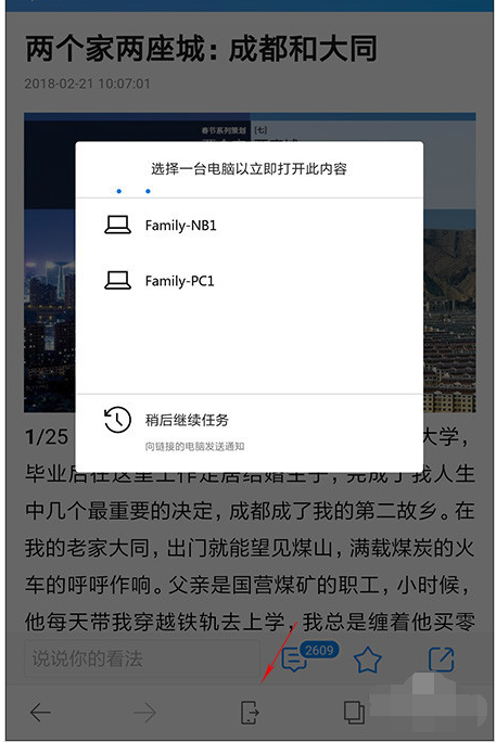 手机上看到一篇好的文章怎么办?添加收藏,再从PC上打开?嗯,这显然不是最有逼格的做法。正确的姿势是,打开手机Edge浏览器,点击下方工具栏中的“发送到”图标,然后从链接账户中选择最终要推送到的电脑。分分秒后,那个被“敲门”的电脑就会自动打开当前网页。注意!是自动!自动!绝对要比某些第三方浏览器的推送体验好得多。