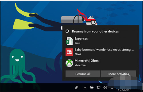 一台电脑上执行的程序,更换一台电脑就能瞬间转移过来?这听上去似乎有些科幻电影的味道,但我们的确已经可以在现实生活中体验到了。在Win10中,小娜就充当了这样一个能将多个设备连接在一起的角色。通俗点儿说,小娜会将你当前打开的网页、正在使用的文档自动上传云端。当你启动另一台电脑,并登录同一微软账户时,便会下载并询问你是否切换到上次未完成的工作里。很显然,这项功能对于职场精英是具有超强吸引力的。而且它不用你做任何操作,直接享受就可以了。