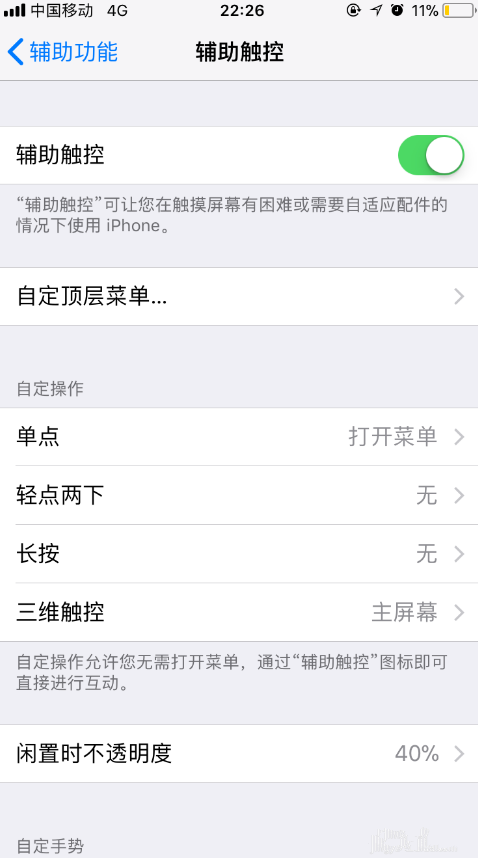 通过以上设置,我们使用iPhone机就可以敲两下进行截图了,需要注意的是,这个连按两下是必须要按在我们的辅助触控上的,其他地方没有用。