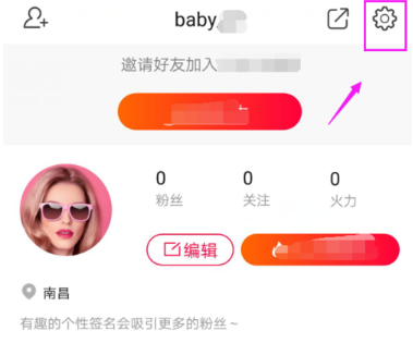 2、进入我的界面,点击设置图标,如图所示。