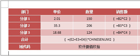 这一步操作同样是利用了Word中一个内置函数,即CHINESENUM2。具体方法是,在要显示大写的单元格内插入公式,后面插入“\\*CHINESENUM2”,如果引用数据没有问题的话,单元格就会自动呈现出大写金额了。