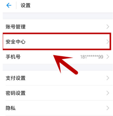 2、在设置菜单中选择“安全中心”选项。