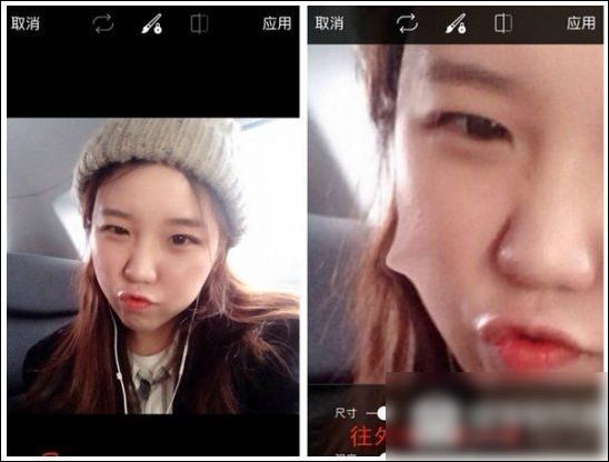 2、选择弯曲,在脸上开始往外划,记得要轻轻的哦~