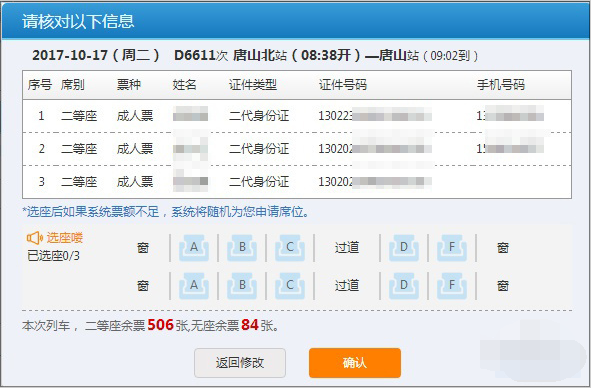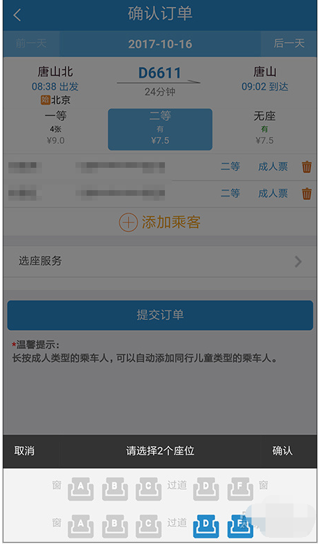 这项功能还有两个小问题,一是当购票人同时选择两种座次时(比如一张一等座一张二等座),自选座功能会失效。再者就是当系统内剩余票数已无法满足自选座要求时,同样也会像以前那样由系统随机分配。