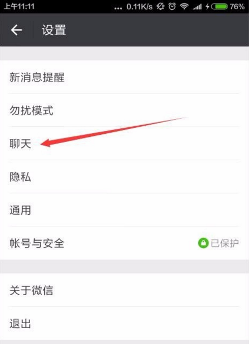 进入微信设置界面,点击聊天功能,如图所示,