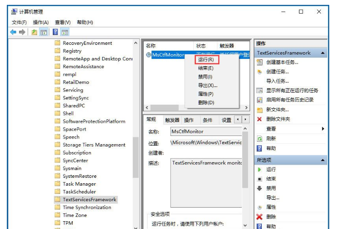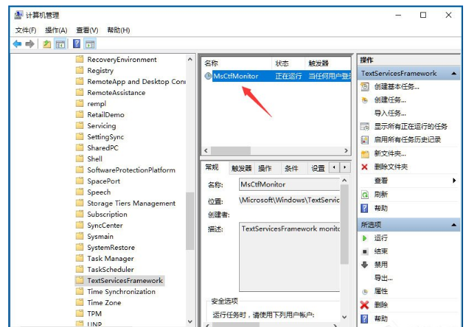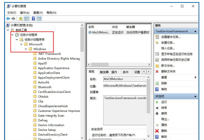 5、点击任务计划程序前面的小三角图标,依次展开“任务计划程序库/Microsoft/Windows/TextServicesFramework”菜单项;