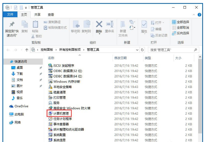 3、在打开的管理工具窗口中,点击“计算机管理”图标;
