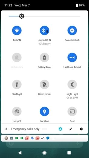 在安卓8.1 Oreo中,每个图标旁还都有一个箭头暗示这里可以被扩展,现在可好Android P啥都没有了,点击图标也一点反应都没有。