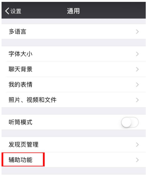 第一个,打开微信设置,在通用里找到“辅助功能”,根据我们的需要,关闭不常用到的功能。