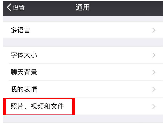 第二个,打开微信设置,在通用里找到“照片、视频和文件,关闭自动下载,因为我们平时跟亲朋好友的聊天信息,看到的照片或者视频和文件,都会保存到你的相册里。