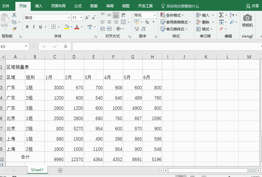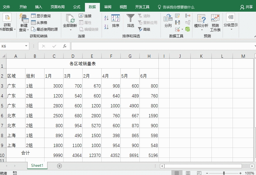 再比如我们把表格里同一销售区域的单元格进行合并,合并后对数据的筛选操作有了很大影响,无法筛选到所需的全部内容。
