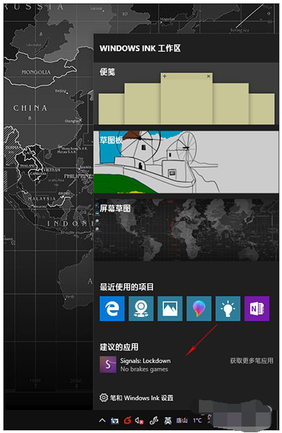 Windows Ink是Win10里专为手写笔和触摸屏用户打造的一项快速笔记功能,点开这个面板时,也会有一些推荐应用显示出来。