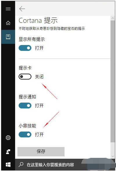 去除方法:打开Cortana,点击“笔记本”→“Cortana提示”,关闭“提示卡”和“小娜技能”前面的复选框即可。