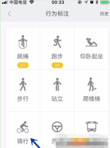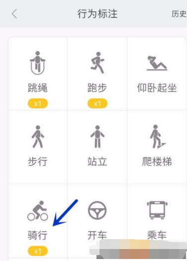 8.点击上图中的结束按钮,即可进入下图界面。此时骑行菜单已经显示被标注一次了。