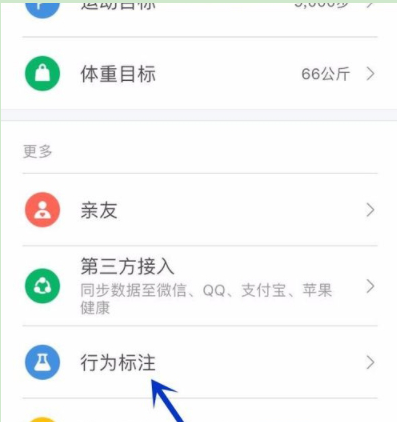 3.向下滑动,找到“行为标注”菜单,进入下图界面。