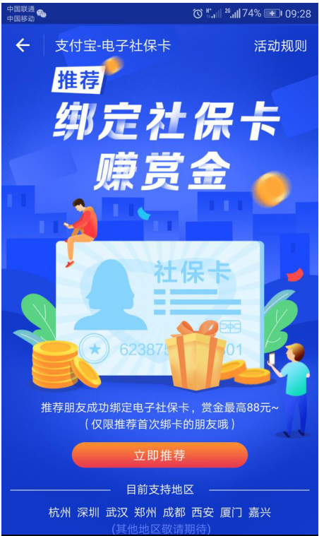 虽说支付宝最近是处处受敌,但依然不影响广大用户对它的支持。现在支付宝又发钱了,推出了一项福利活动,推荐用户绑定社保卡就能领赏金,快来看看。