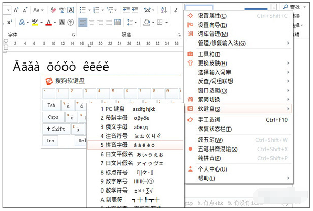 输入法软键盘是很多小伙伴最先想到的办法。具体做法是,启动输入法,右击提示框,选择“软键盘”→“拼音字母”,然后直接在键盘上敲打对应的键位即可。这个方法有两个弊端,第一只支持声母,像韵母、复韵母无法直接打出。其次字母需要单独打出,键位排布也不相同,不便于快速盲打,实际工作中并不好用。