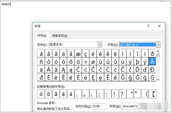 利用Word的“插入”功能也能输入拼音,具体方法是:点击“插入”→“符号”→“其他符号”,将右侧的“子集”修改为“拉丁语扩充-A”,然后直接在面板中双击字母即可。可以看到,这个方法能够输入绝大多数带声调的声母及韵母,但弊端同样明显,复韵母无法直接输出,且并不适合大批量书写。