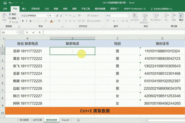 用Ctrl+E提取数据不要太牛,分分钟颠覆你的想象力!