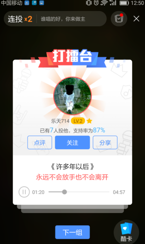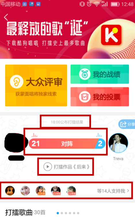 以上就是关于酷狗音乐打擂赛的投票拉票方式介绍,这也是获胜关键哦。