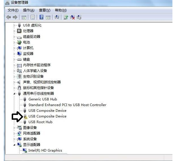 选“通用串行控制器”,在有提示黄色叹号的设备上右键“更新驱动程序”即可。