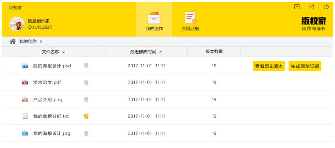 版权家是一款服务于广大创作者、为其原创作品提供权属和原创性证明的软件,它能够在你进行创作的同时就记录整个作品的创作过程,在作品创作完成的第一时间就可生成作品权属和原创性的证明。创作过程记录可以在国家授时中心可信时间、国家认可的数字证书颁发机构、工信部认证的版权区块链上进行核验。