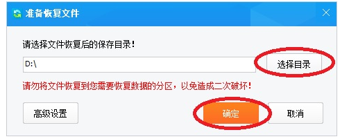 注意:请不要将文件恢复到有数据需要恢复的分区里,以免造成二次破坏。