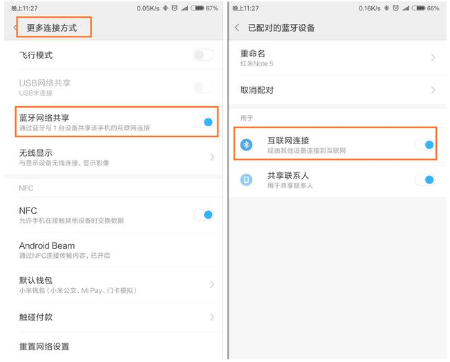 打开小米手机,然后两台手机进行配对,配对成功;两台手机都需要在更多连接方式下开启“蓝牙网络共享”,同时在已连接设备里,在蓝牙用途设置里开启“互联网连接”选项,这样设置后方能通过蓝牙共享网络。