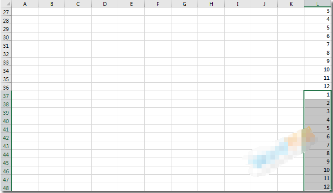 步骤一、先将所有表头部分最右边一列序列填充1、2、3……12。