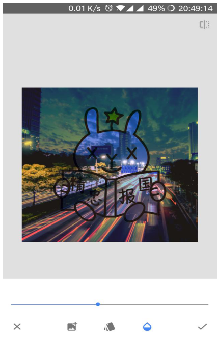 经过上一步,已把两张照片合在一同了,但只看到了一个人,另一个人被远景图给“遮挡”住了,这就需求运用snapseed的蒙版功用,用蒙版把前景图中的人物独自擦出来。