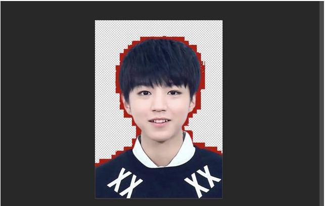 点击图片背景,即可发现大部分背景已经被魔棒一键选中,点击【Delete】键即可抠去背景图。