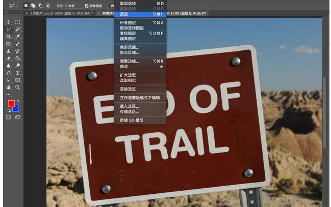 在上方工具栏【选择】中点击【反选】,选中背景。