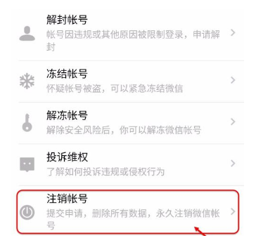 进入微信安全中心,点击【注销帐号】按钮;