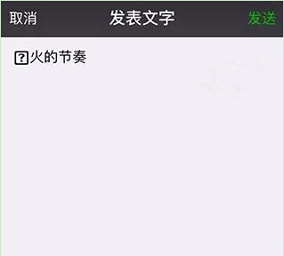2、然后按住相机按钮进入发消息界面,将刚才复制的内容粘贴到输入框,这时你会发现粘贴的文字最前面有一个方框套问号的特殊字符,事实上正是这个字符实现了让字体大小不一的功能。