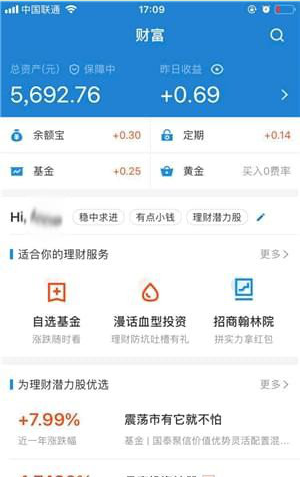 2、接着在登录成功之后,单击底部的“财富”选项,进入到财富选项控制面板,可以清楚的看到自己的总资产,余额宝收益,芝麻信用分等。