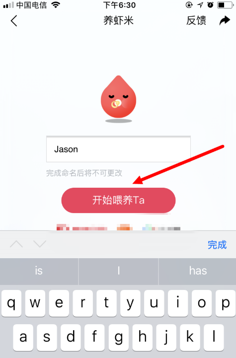 名字起好后,点击“开始喂养Ta”(名字起好后,是不可以更改的)。