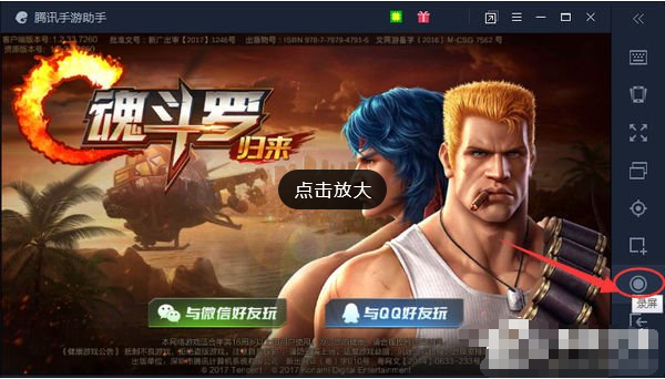 2、运行游戏后会弹出腾讯手游助手的游戏窗口,在该窗口右侧的功能列表中就可以看到“录屏”功能了。
