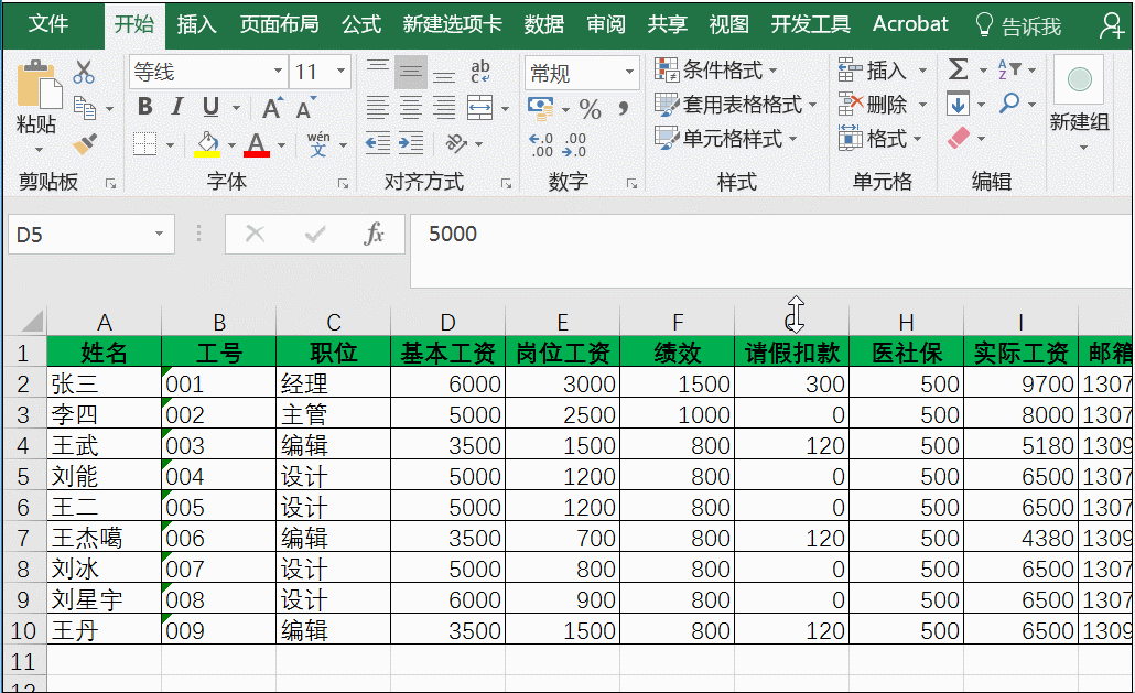 第二种:选中行,按住Shift键,之后当鼠标变为双向箭头时,向下拉动即可。