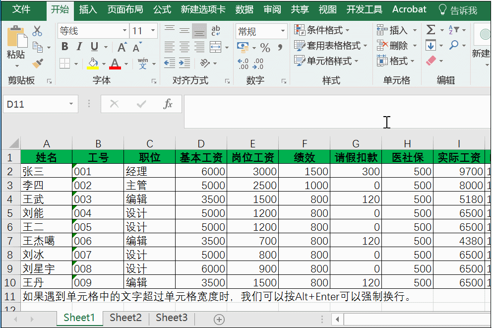 如果遇到单元格中的文字超过单元格宽度时,我们可以按Alt+Enter可以强制换行。
