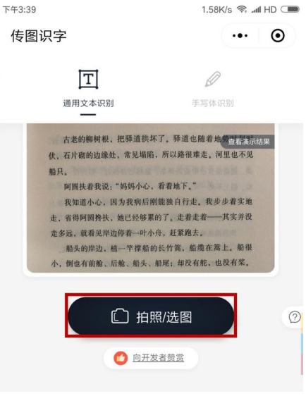 然后微信小程序会解析图片文字,解析完成后可以选择要提取的文字。